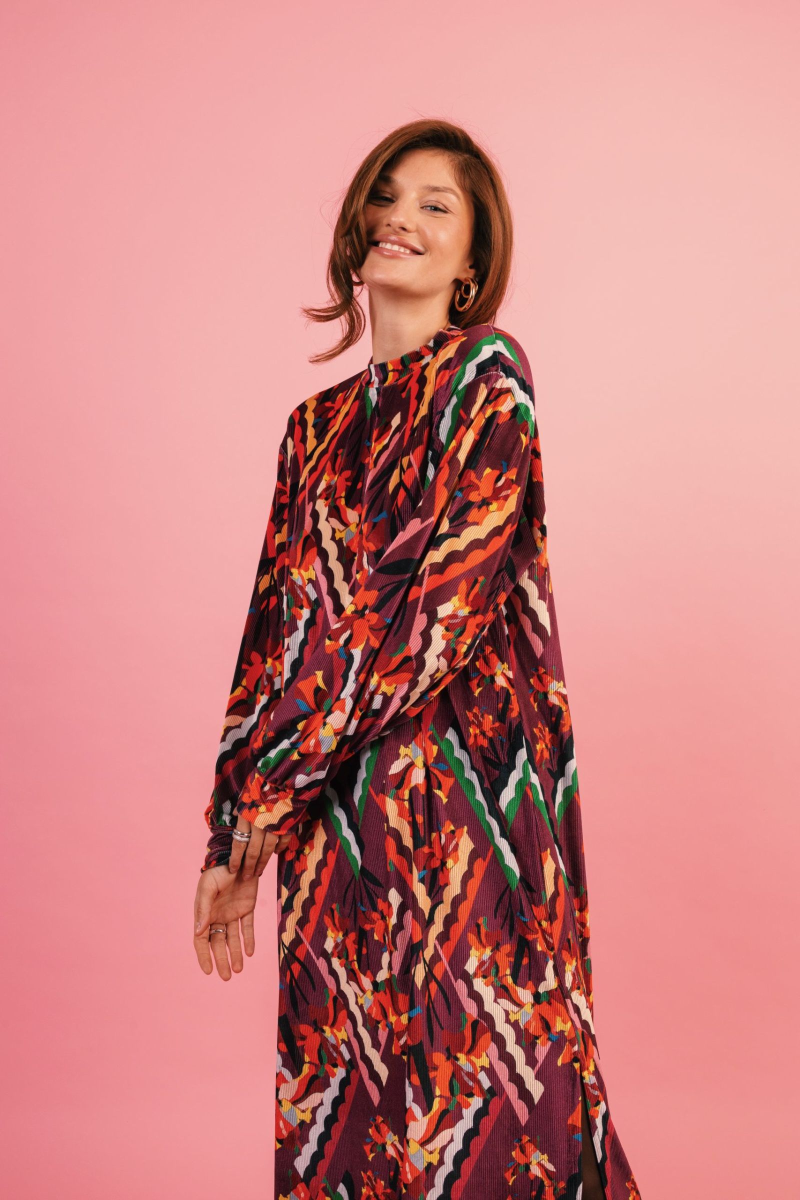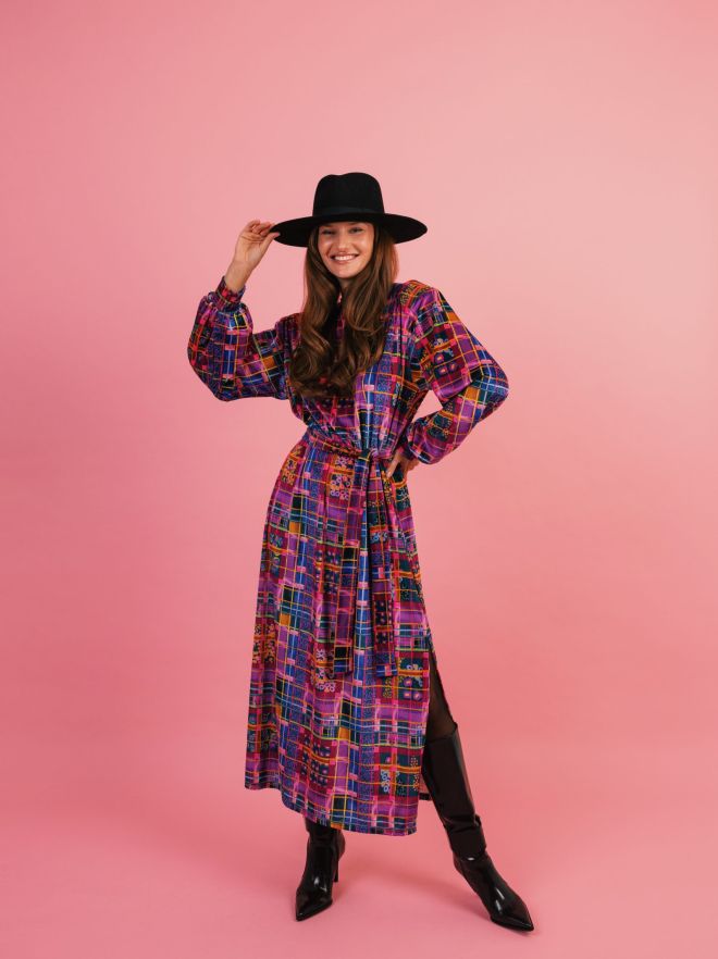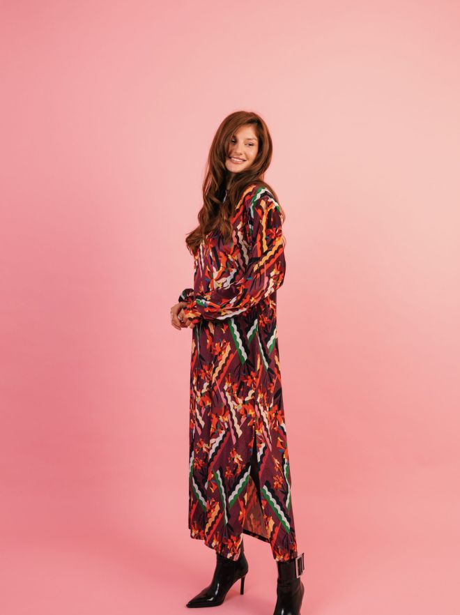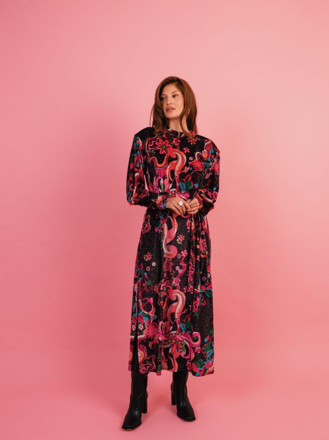 The Vivienne Dress is an effortless maxi piece that elevates any winter look with its soft drape and relaxed elegance. Crafted in One Size to flatter multiple body types, it features structured shoulders with subtle pads, fluid side slits, and a detachable belt for adjustable styling. Made from a stretchy velvet-rib fabric with a delicate sheen, it combines comfort with refined, timeless style.