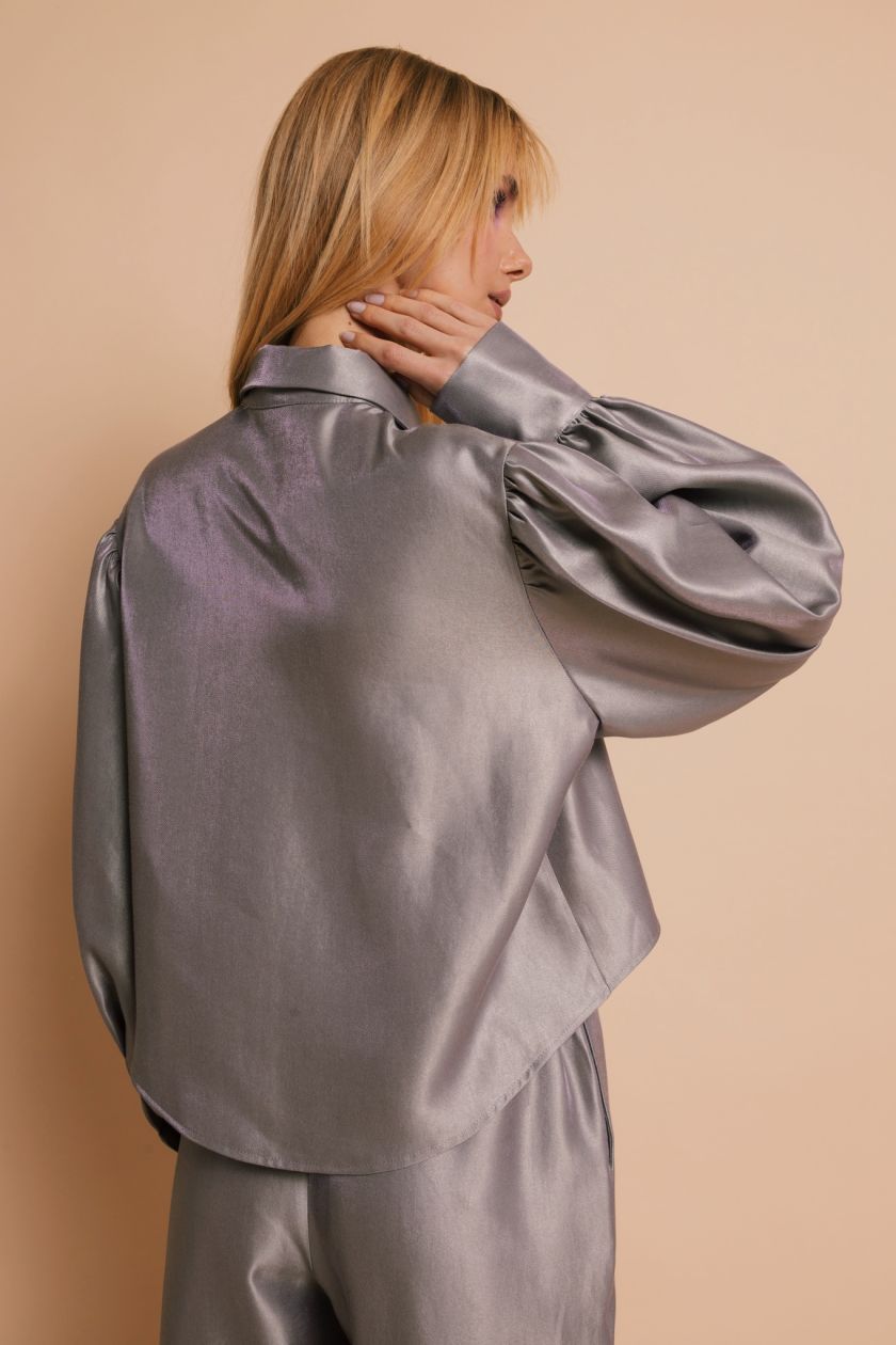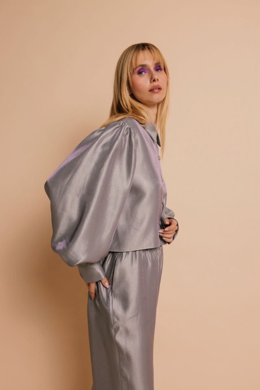 - Διακριτικά μανίκια με μαζεμένους ώμους