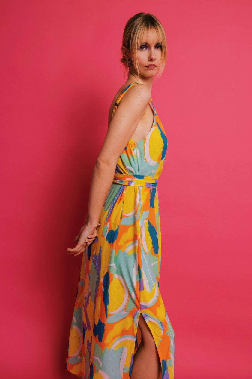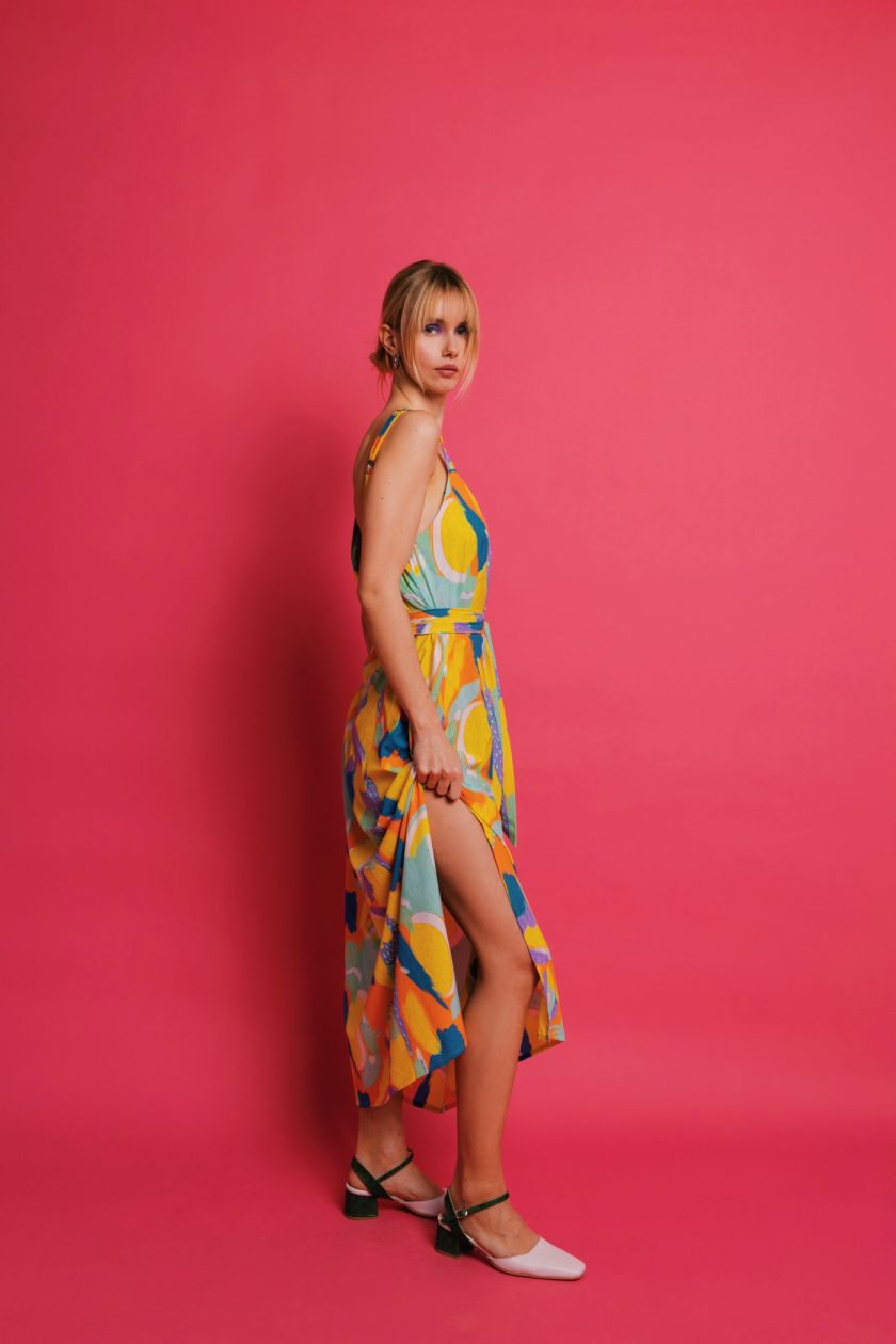 - Ρυθμιζόμενο λουράκι στο ντεκολτέ και στην πλάτη