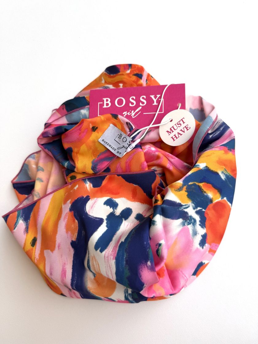 TheĀ Madonna ScarfĀ is a timeless accessory that effortlessly elevates any outfit with its luxurious feel and versatile style. Crafted from premiumĀ Silk TouchĀ fabric made ofĀ 100% recycled polyester, it offers a soft, smooth texture that drapes beautifully. Designed with the exclusiveĀ Bossy Girl pattern, this scarf adds a statement touch ā whether styled around the neck, tied to a bag, or worn as a headscarf.