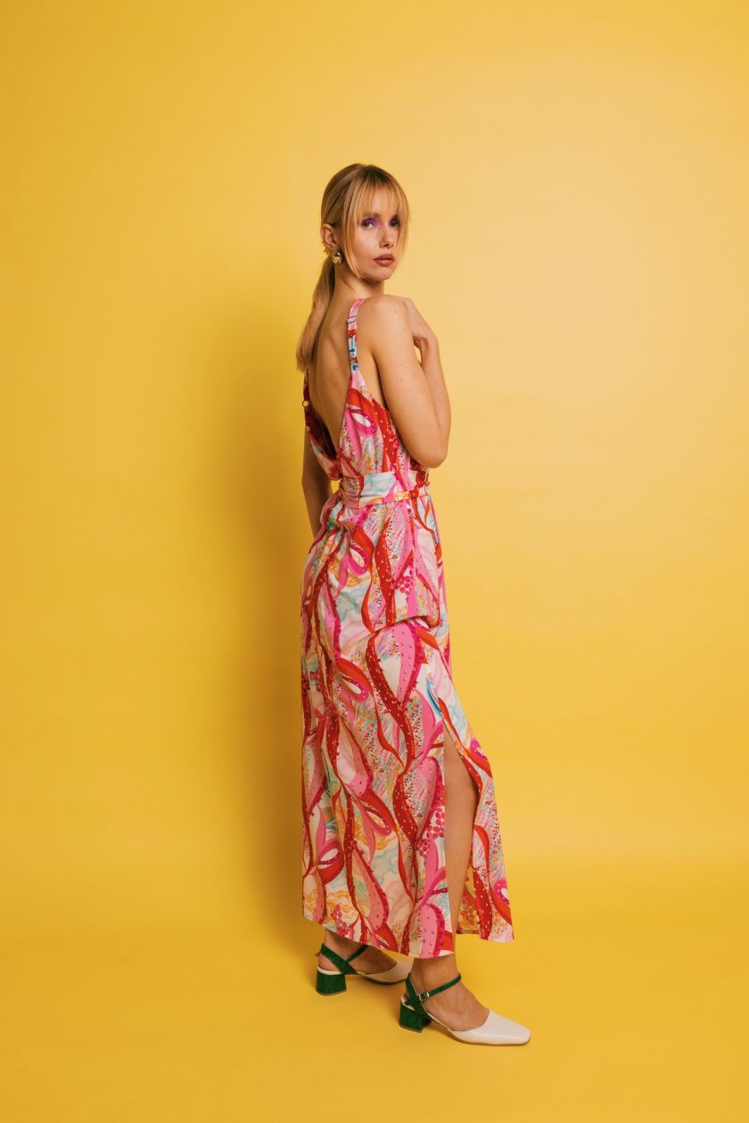 - Lightweight maxi dress with adjustable straps at the neckline and back