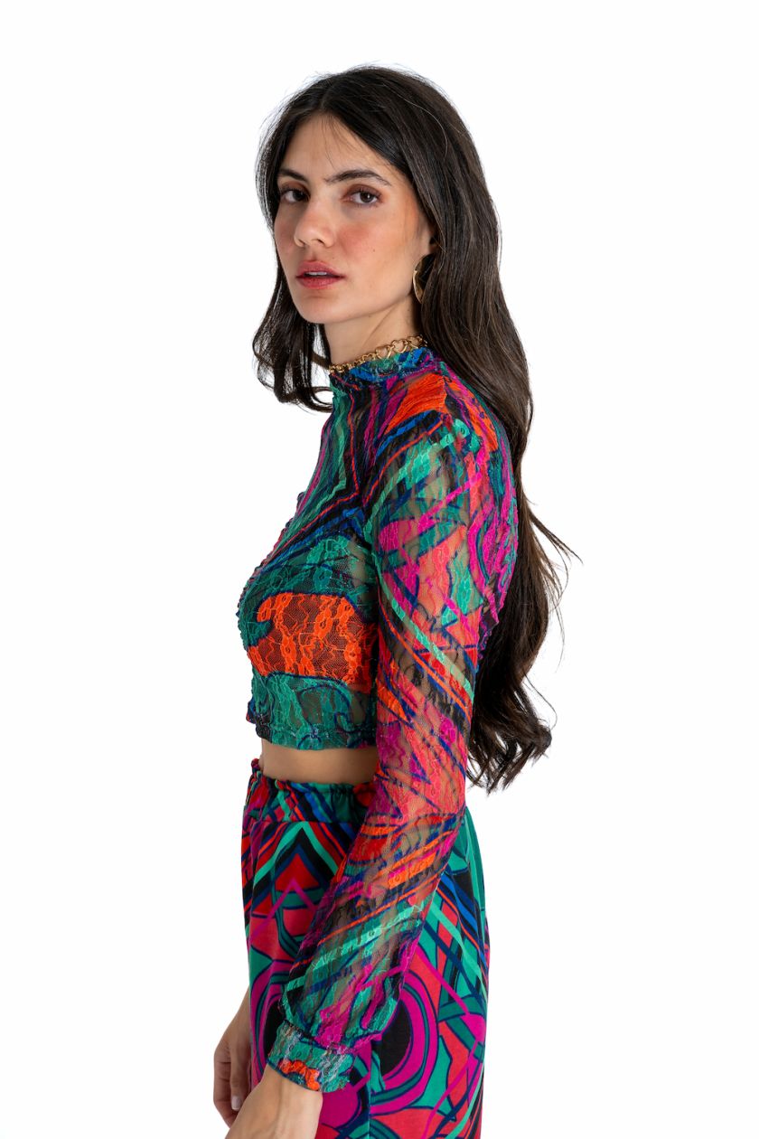 The Printed Lace Top is an elegant and feminine piece featuring a distinctive print exclusive to Bossy Girl. Crafted from soft, stretch Chantilly lace, it offers a comfortable yet refined fit. The design includes a delicate mock neck that adds a sophisticated touch, making it perfect for both daytime elegance and evening style.Design Features