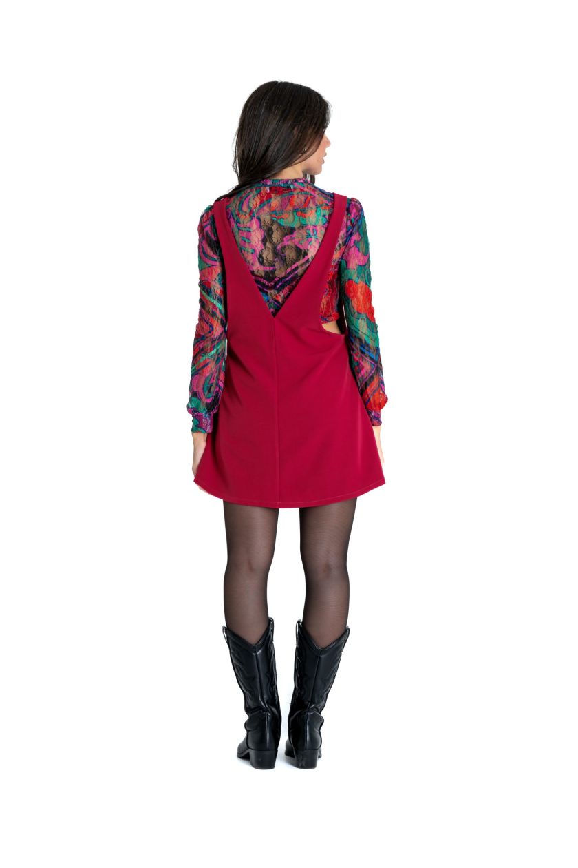 100% Polyester (PES)Oversized fuchsia jumpsuit with matching strap buttons, low armholes, and V-shaped back.