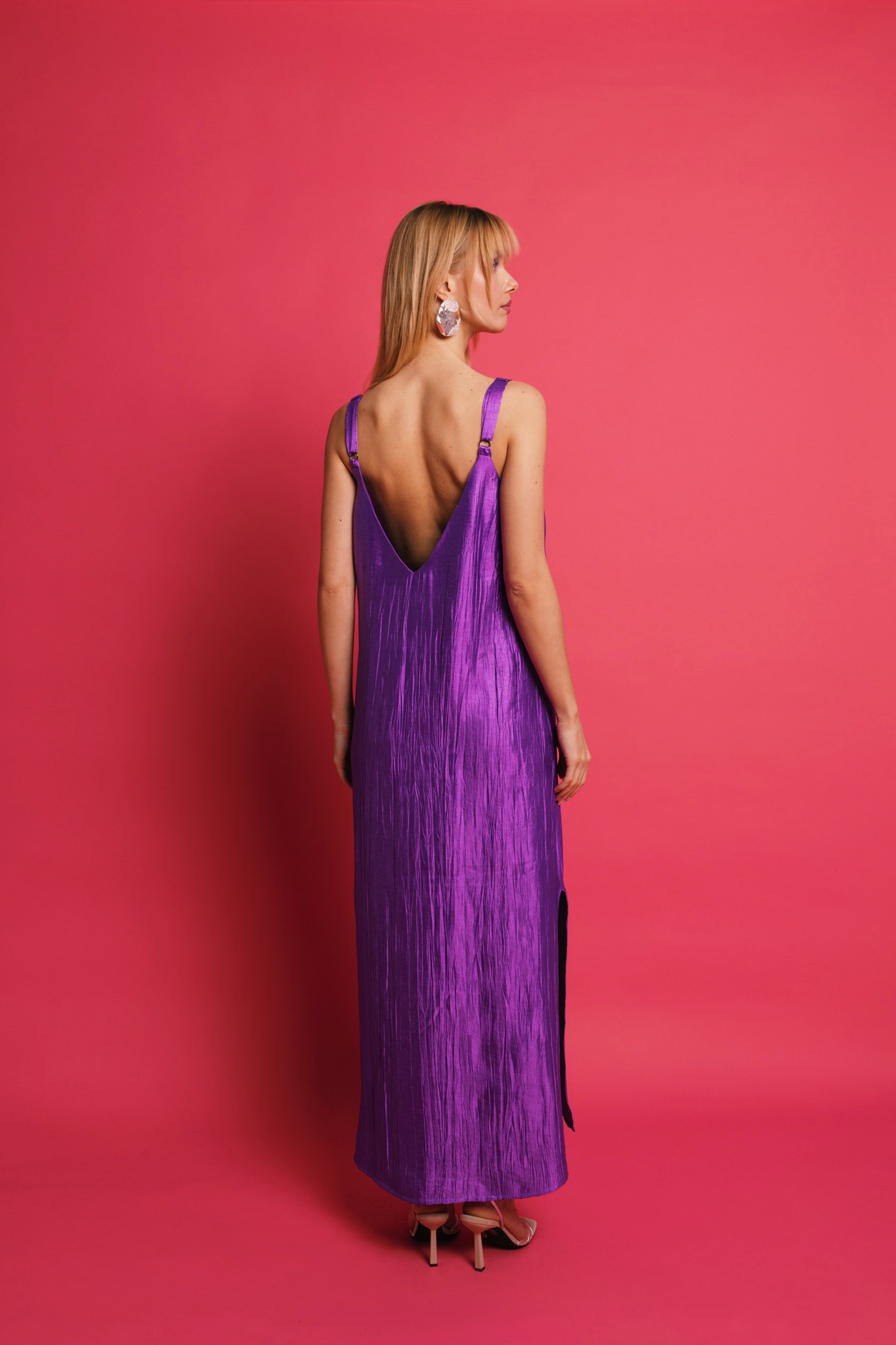 - Structured silk-touch fabric with a metallic crinkle-textured finish