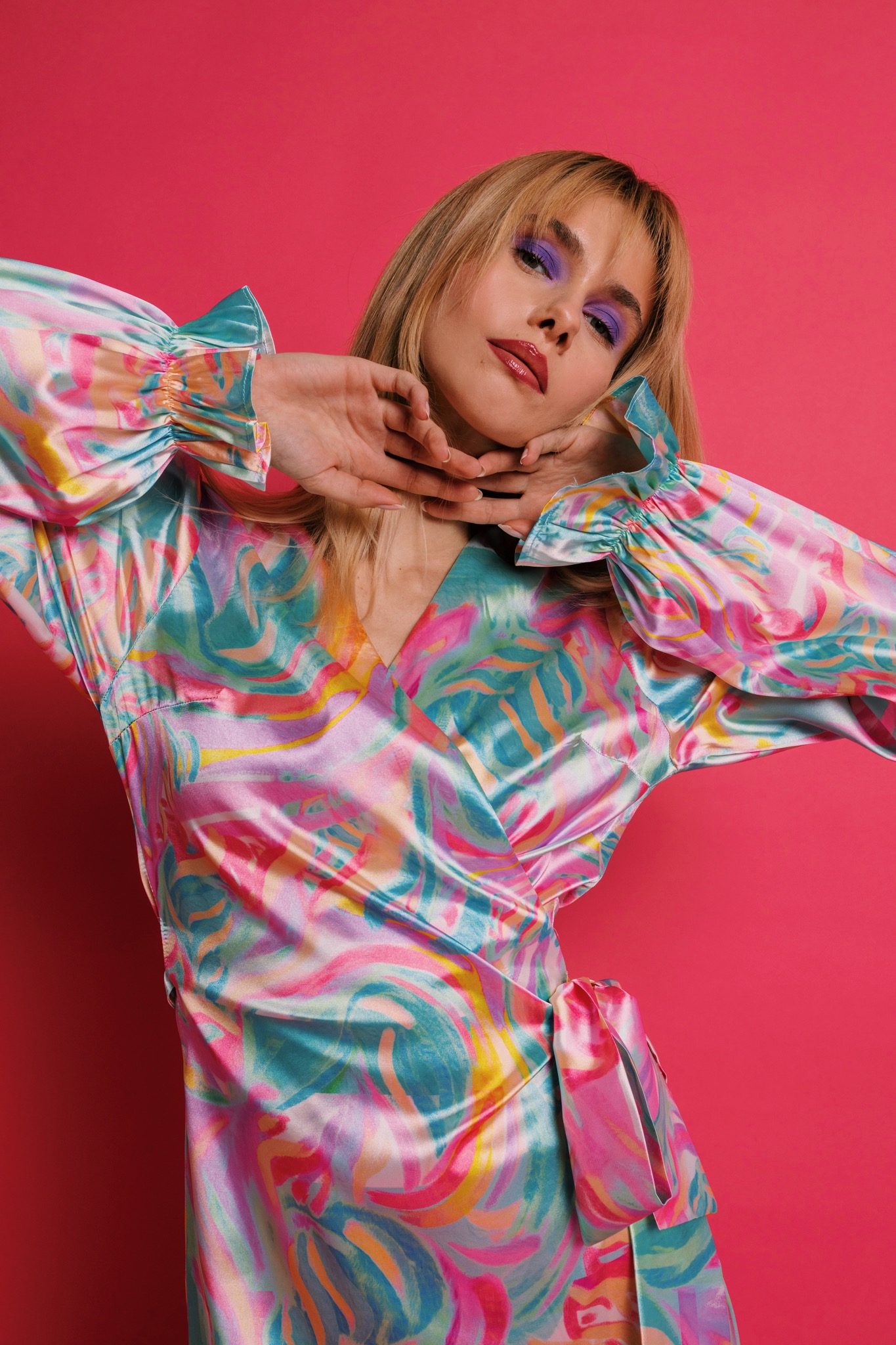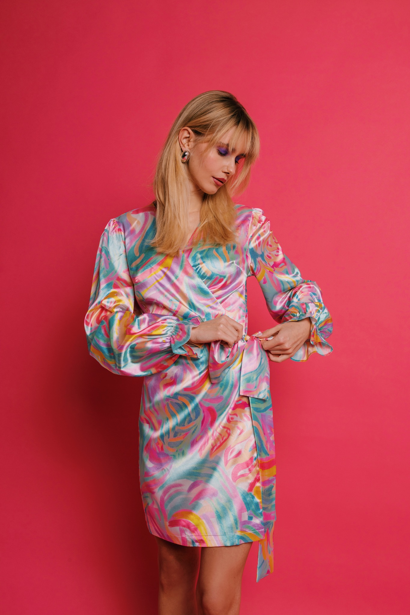 Design Features:- Wrap silhouette with an integrated belt for multiple tying options