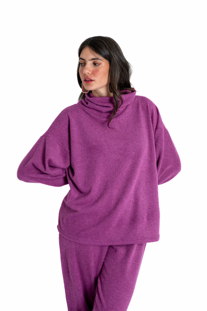 Acrylic, Polyester, and Polyamide blendOversized purple turtleneck sweater made from ultra-soft fabric for a cozy and elegant look.